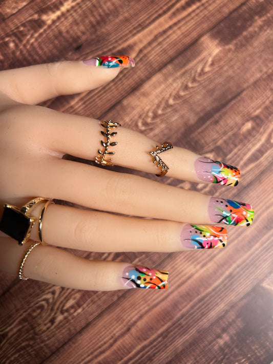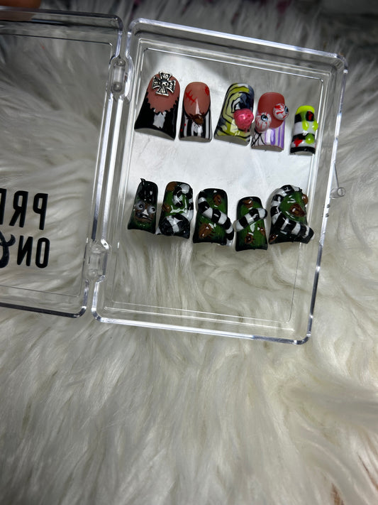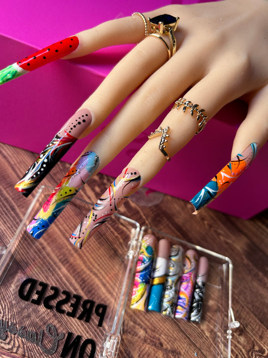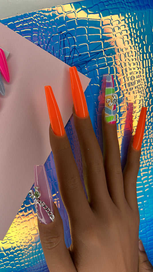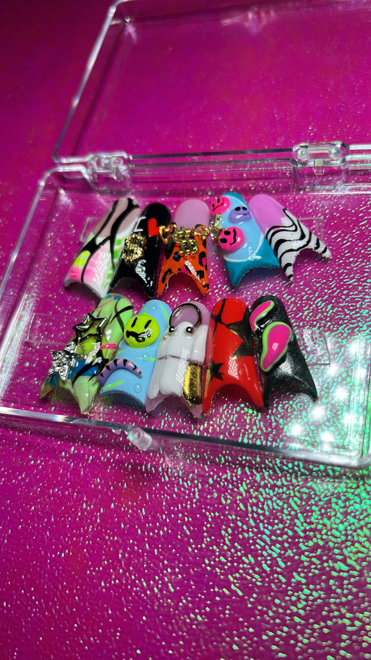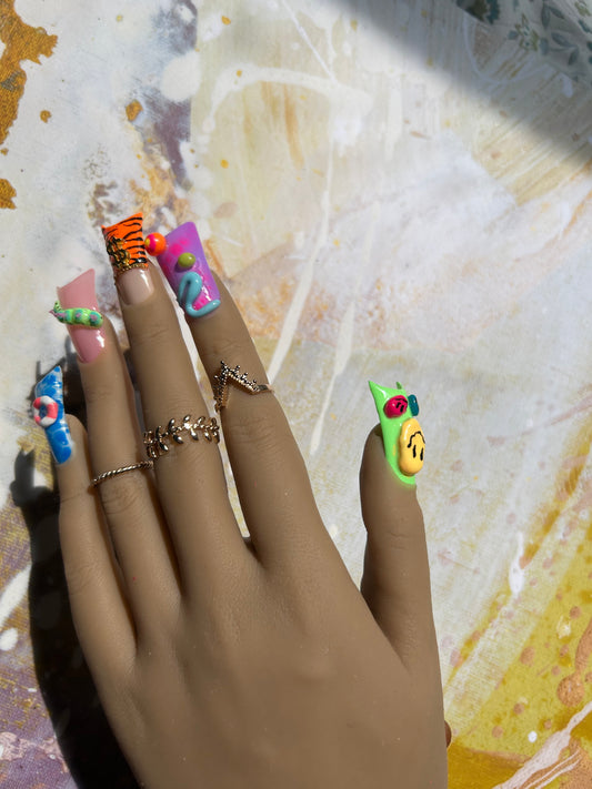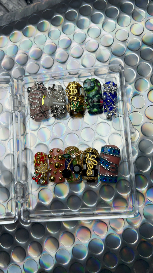 Chrome,rhinestones,aura, airbrush vibes,90s nail art etc.